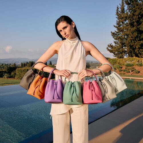 可愛らしさとエレガントな表情を兼ね備えたバケツバッグ。