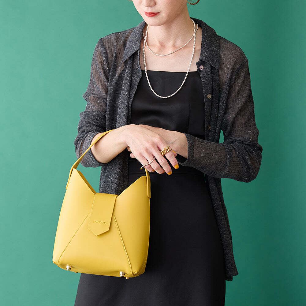 V字カットのシャープさと立体的な本体が特徴でスタイリッシュなワンハンドルBAG。